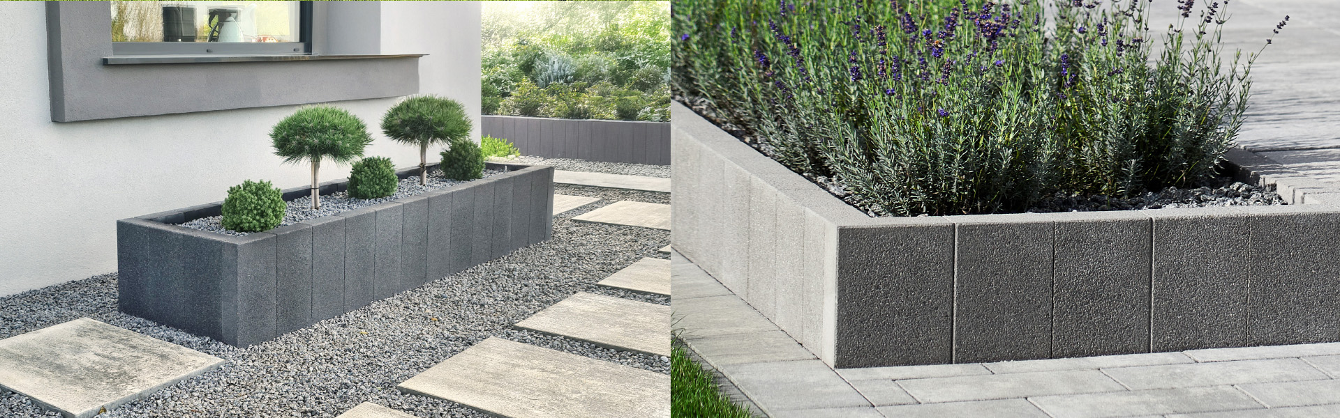 Różna wysokość palisady 80 cm i 40 cm pozwala na tworzenie rozmaitych kształtów murków i dopasowanie ich do otoczenia.